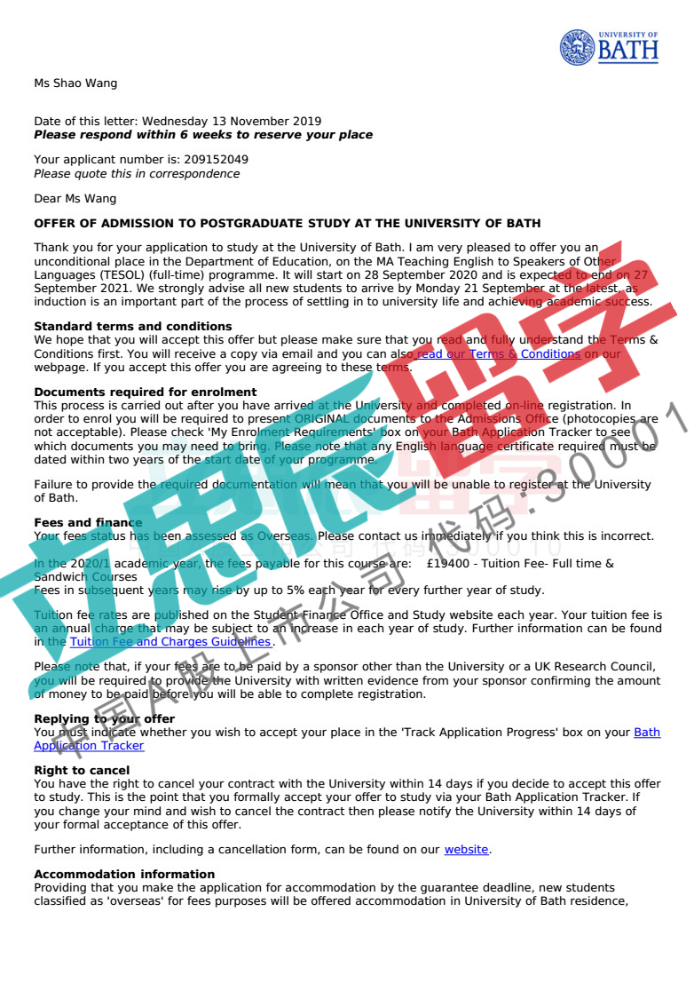 和W同学相识于19年4月底,W同学当天上午在公司官网留言后,下午便赶来公司和我当面详聊了自己的留学想法和规划。来咨询的时候,她向我传达了自身对英语及英语教育方面的浓厚兴趣,于是我们商定选择了Tesol专业。W同学在大学期间及毕业后的工作时间还是非常丰富的,这些都大大增强了她对学校申请的竞争力。但在当时其实W同学是首选赴香港求学的,然而由于客观环境的变化,在10月底W同学临时决定改申英国。甄选开设了TESOL专业的英国大学,盘点这些院校的最新录取要求,汇总院校的综合世界排名以及专业排名,同时结合w同学的申请评估与申请背景,最终为她选择了跻身QS世界排名前100的诺丁汉大学和利兹大学,同时还选择了同样在专排上表现突出的巴斯大学。在申请递交两周后,火速收到了巴斯大学的录取。