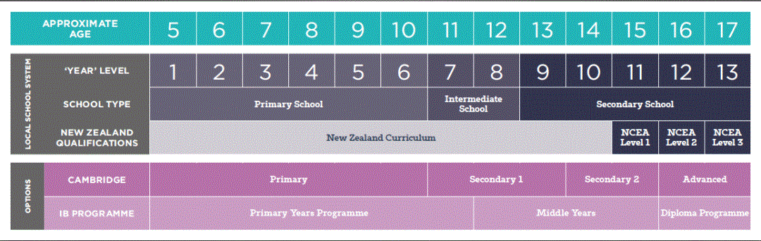 在新西兰的学习体系中,学生可以选择新西兰本土的课程,一至十年级被称为New Zealand Curriculum,从十一年级开始,学生会进入NCEA(National Certificate of Educational Achievement)阶段的学习。NCEA的成绩也受到世界范围内很多国家高校的认可,学生可以使用NCEA成绩申请包括新西兰高校在内的世界各国高校的学习。